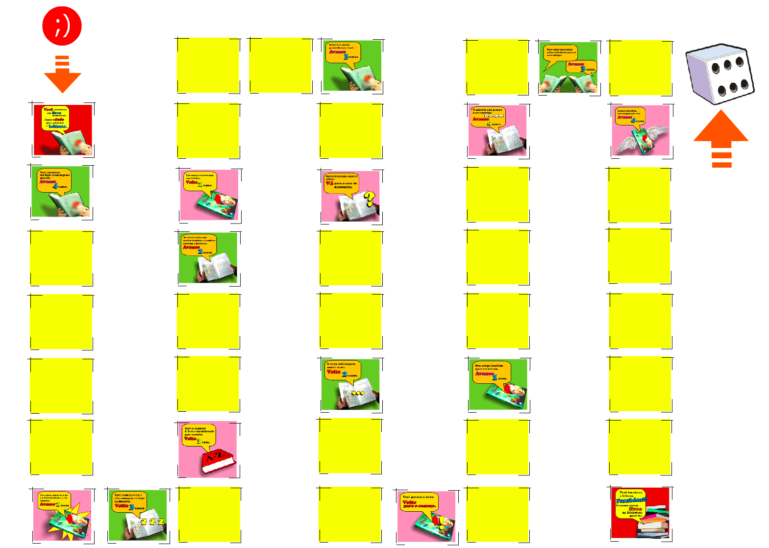 O Dado Mágico é um jogo de tabuleiro que põe a criança em contato, de forma lúdica, com questões pertinentes à leitura. Brincando de ler enquanto joga, ela vivencia experiências agradáveis e desagradáveis relacionadas ao encontro com o livro, que a fazem avançar ou recuar no jogo, simulando o que aconteceria se as situações de leitura acontecessem de fato. Cabe salientar que tais situações encobrem aspectos teóricos importantes a serem levados em conta ao longo do processo de formação do leitor. Durante o processo de formação do leitor, inúmeras circunstâncias podem afastá-lo do contato com o texto escrito. Por esse motivo faz-se necessário a figura do mediador de leitura. O mediador não somente aproxima o leitor da obra, mas também acompanha sua trajetória, ajudando-o a vencer barreiras.Tecelina
